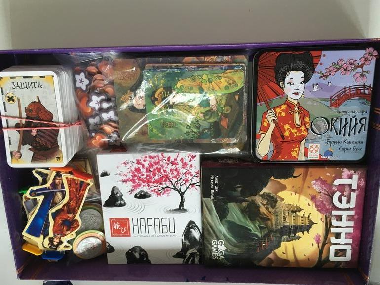 Играть тогда решили вдвоём с сыном, он и выбирал. Дома у нас есть подборка игр, связанных с Японией. Сын принёс сразу три таких игры. А так как они все лежат в одной коробке я решила поиграть потом ещё в какую-то из 2-х не игранных игр, если будет время и желание.