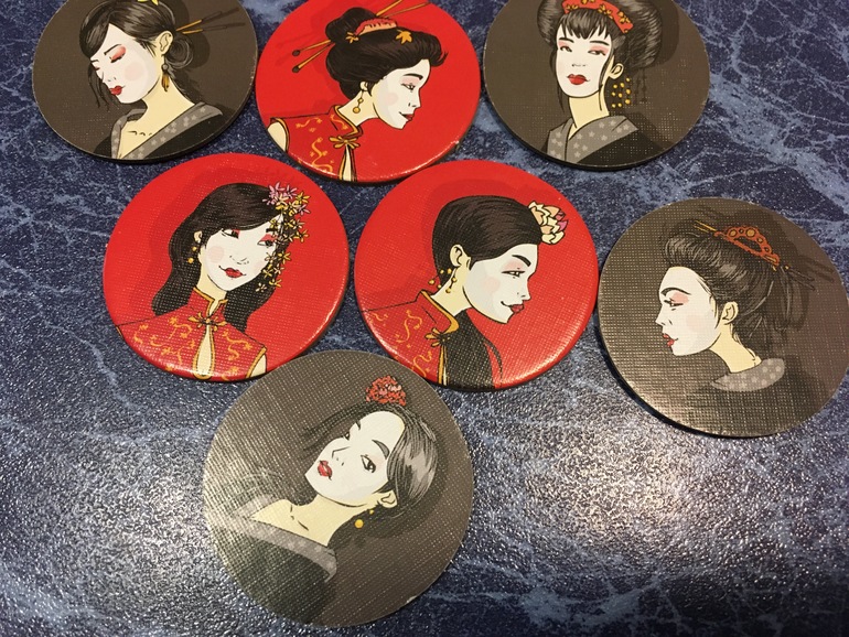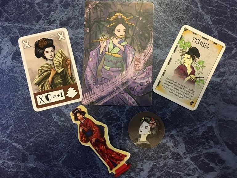 Гейша ходит третьей и в начале своего хода бросает кубик, чтобы узнать в какой дом направляется, чтобы развлекать гостей (петь, танцевать). По пути может также заглянуть на рынок и продать вещи. После того как она попала в дом, по броску кубика определяет сколько ей заплатили за услуги.