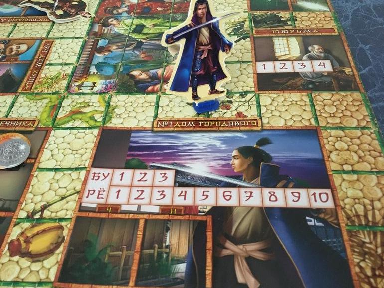 Расскажу о каждом горожанине. Первым ходит городовой. В начале каждого раунда ему полагается из казны 1 рё2 бу. Он может нанять за 1 рё помощника -стража, который может только ходить и ловить вора. Ходят персонажи по клеткам по броску кубика. В дом заходить можно только в «двери». Городовой и его помощник ходят по полю, заходят в дома и ищут вора, перевернув карточки.Если вор обнаружен, городовой получает 2 рё из казны. Если не обнаружен, то платит штраф равный стоимости украденных вещей. Остальные горожане могут посмотреть карточки вора в своих домах и либо сообщить городовому и получить от него награду, либо умолчать, но когда городовой обнаружит вора в их доме, он надожит штраф, а если штраф нечем платить, отправит в тюрьму.