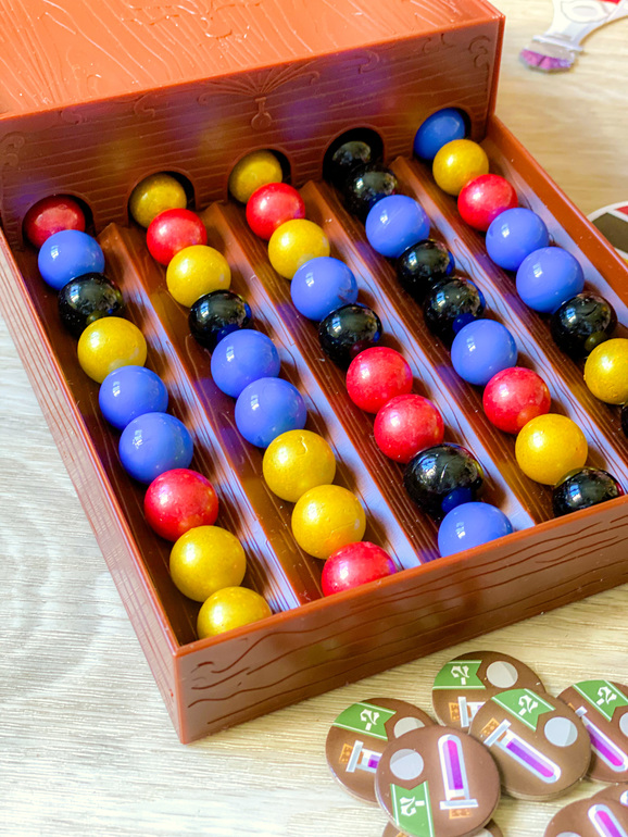 Старшая дочь: понравилось, как шарики сталкиваются, что это может быть непредсказуемо, вытягиваешь один, а там ещё много выкатывается, а ты и не знал. Не понравилось, что шарики слишком громко скатываются. Оригинальная игра и интересная, нравятся картинки у зелий.