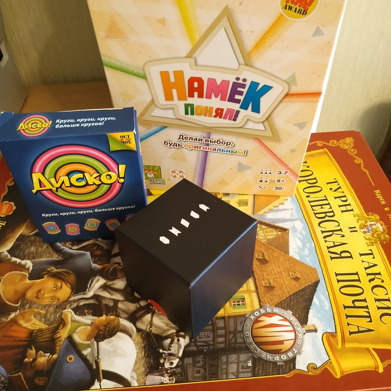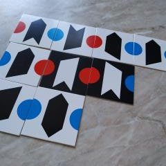 Игра абстракт, игра необычная. Мне нравится своей неизбитостью, ну и не страшно то, что я часто проигрываю старшему сыну. Средний в нее не играет, ему не нравится контраст яркий в картинках... Кому то да, может не подойти из-за этого. Есть несколько вариантов игр, но смысл один, надо выкладывать карты на скорость, подходящие по фигурам. Цель - перекрыть и обогнуть своими картами карты соперника. Игра моментальная по времени!!!