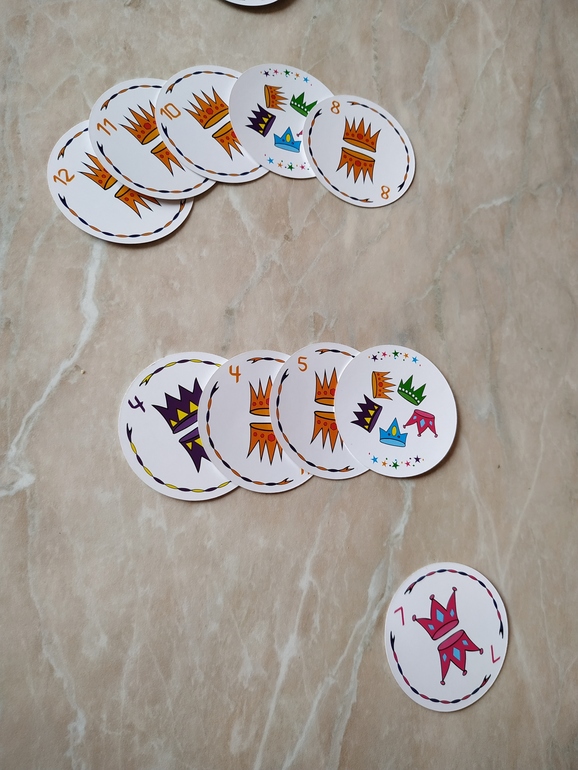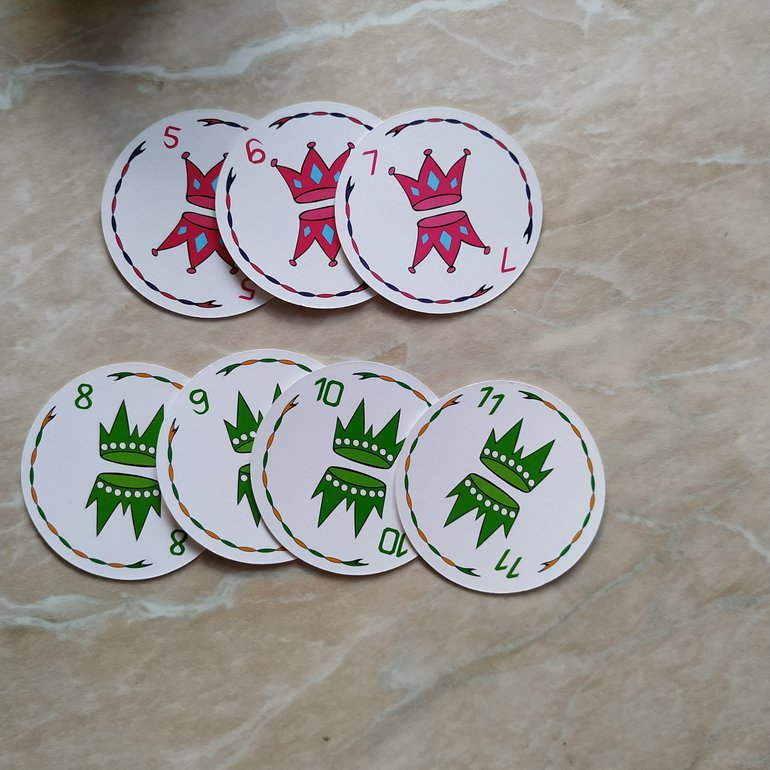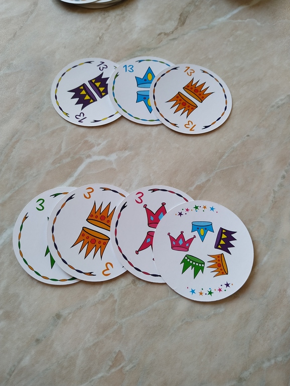 Итак, в правилах написано, что игра длится 5 раундов, в каждом раунде соответственно 3,4,5,6 и 7 карт. В каждом раунде появляется королевский джокер, и его число равно количеству карт на руках. То есть в первом раунде всего три карты и дополнительный джокер - все карты тройки, во втором - четверки и тд.