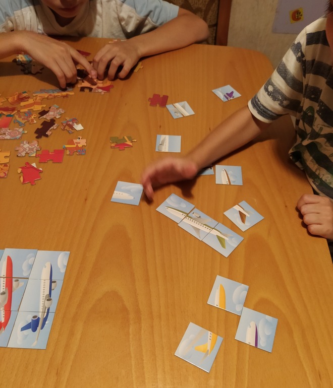 Мы у бабушки. Количество игр ограничено)). Как обычно мемо подводный мир, ламы, сороконожки, ходилка с морскими обитателями и морская рыбалка. Это с сыном. С дедушкой в домино. Сегодня он проигрывал.