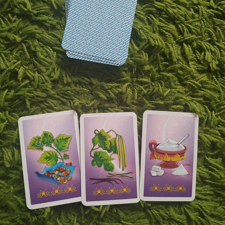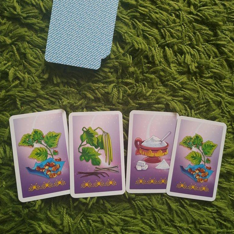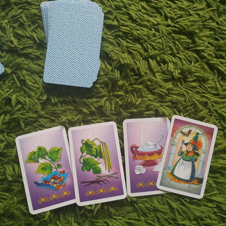 📌Цель игры - собрать набор карт с шестью ингредиентами (какао, сахар, молоко, ваниль, изюм и орех). Кто собрал первый, тот и выиграл!. Но внимание, ведьмы могут быть очень хитрые, они могут выманить твои карты обратно.