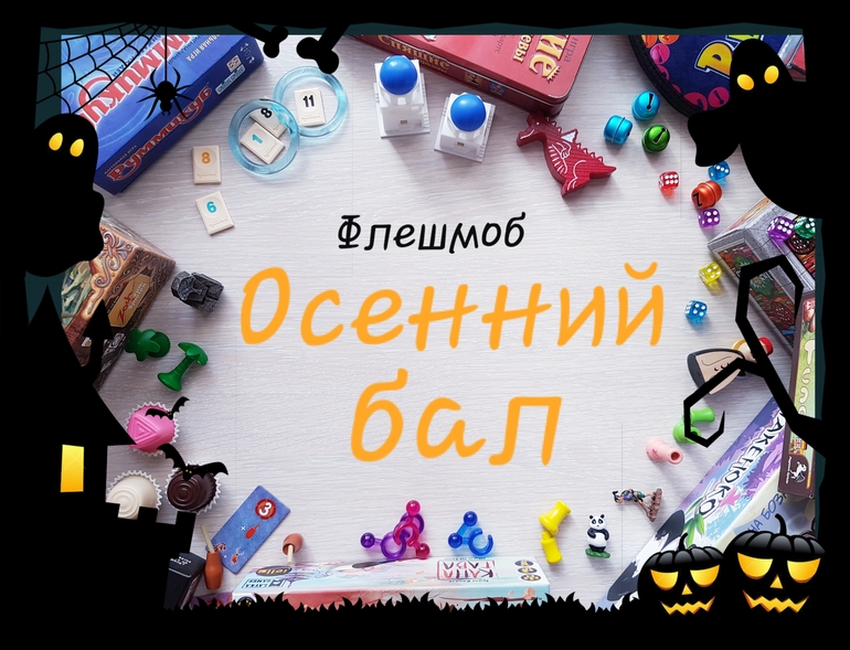 Все верно, вы правильно догадались, флешмоб будет посвящен играм, в которых витает дух нечистой силы. Привидения, зомби, тыквы, ведьмы, кладбища, летучие мыши, гремящие цепи, пауки, бурлящий котел с зеленым варевом, мумии, банка с крысиными хвостами - если что-то подобное есть в ваших настольных играх, то добро пожаловать на наш бал!