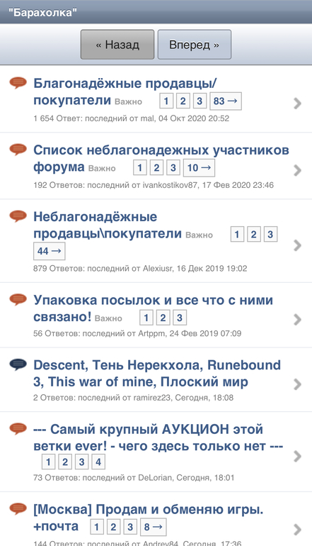 На форуме Игроведа тоже есть барахолка, но я вот почему то ее не очень люблю и не хожу. Может потому, что первая же строка форума «Список неблагонадёжных участников» на несколько страниц? 😄 Однако, факт остаётся фактом. Игры там найти можно.
