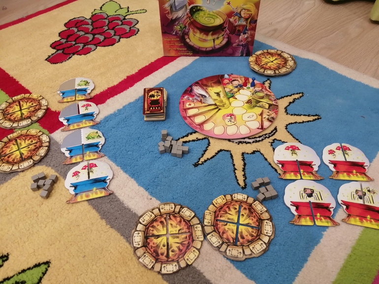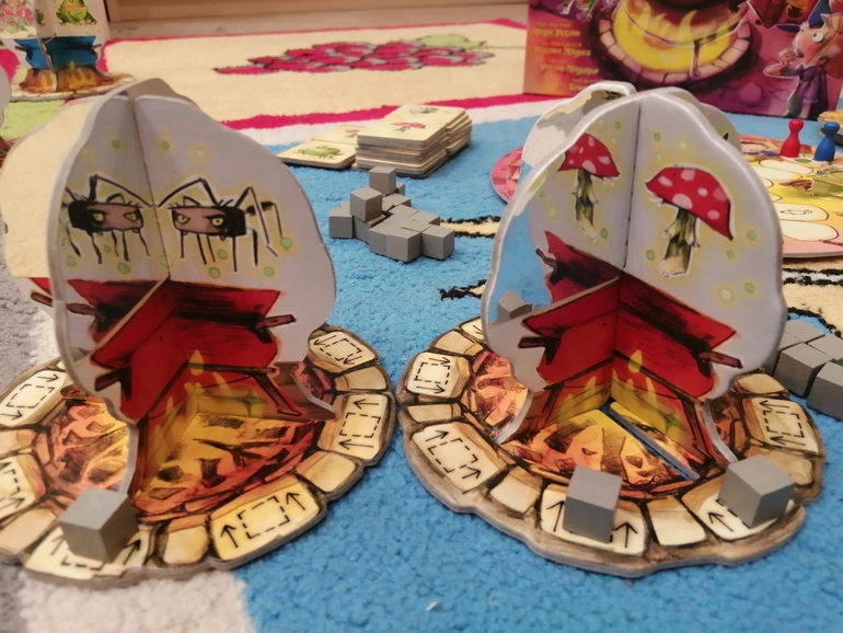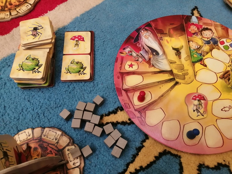 Тот кто закончил первым, кричит: "Колдовство прошло!". И вместе проверяем, так ли это. Так игра продолжается пока не закончится вся книга. В игре есть и ученик волшебника, который помогает продвигать твою фишку на 2 дополнительных деления и мышка помощник, которая бежит к отстающему и помогает в следующем туре.