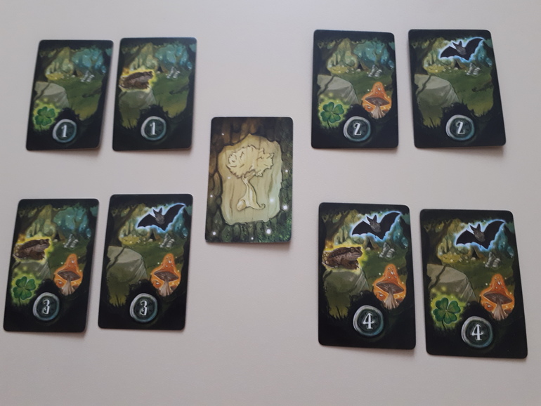 На каждой карте леса есть её стоимость, по легенде игры это оплата ведьмами услуг марионеток. На карте леса может быть изображено от одного до трех ингредиентов. Дочь, в отличие от меня, сразу смекнула что летучие мыши самые дорогие. В середине карта леса лежит рубашкой вверх.