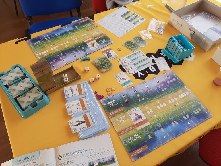 Хотелось поиграть во все, но в этот раз остановились на " Крыльях". Сидели около часа и так и не разобрались в нюансах игры. Вроде все не сложно, но некоторые моменты воообще не прописаны в правилах. В итоге так и не доиграли. Жалко, что не было консультанта, помочь нам с правилами.