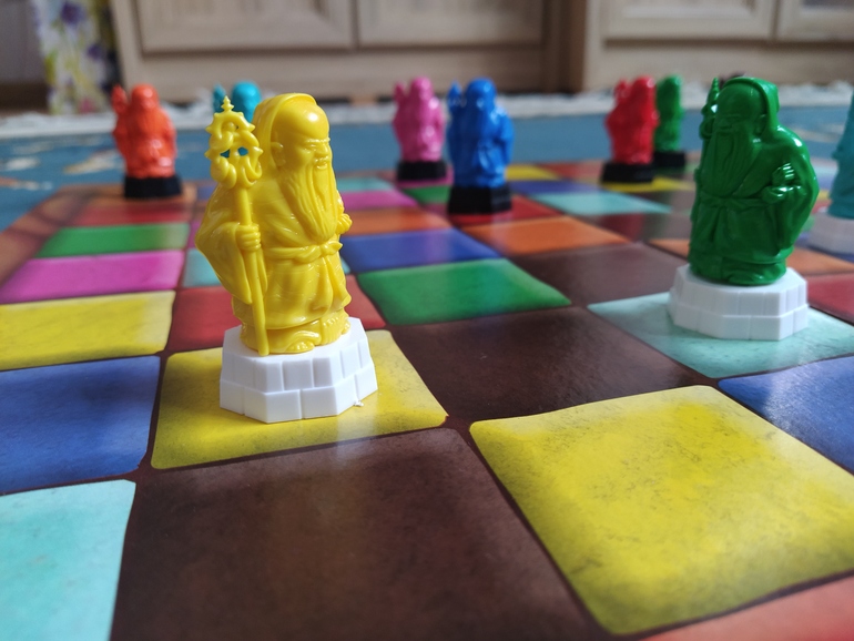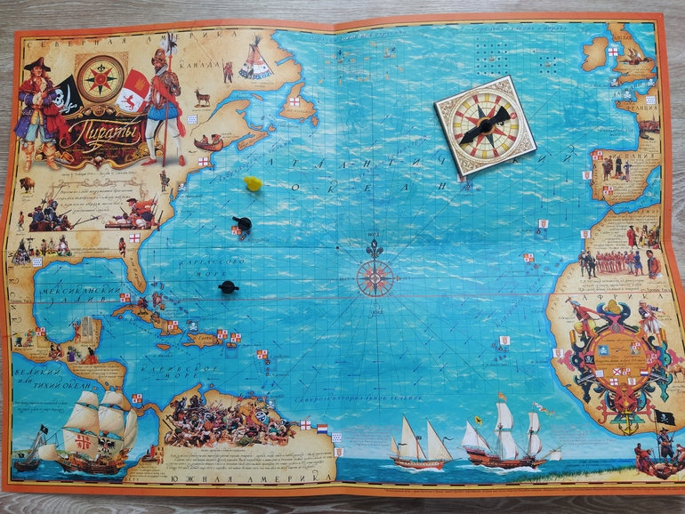 Наша тоже затасканная, я ее скотчем подклеила. Мне нравится в ней, что можно корректировать путь. В правилах нужно пройти и по морю и по суше, но это долго. А если нужна быстрая партия, то мы только по морю идём)