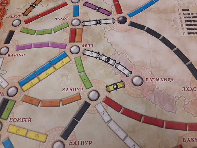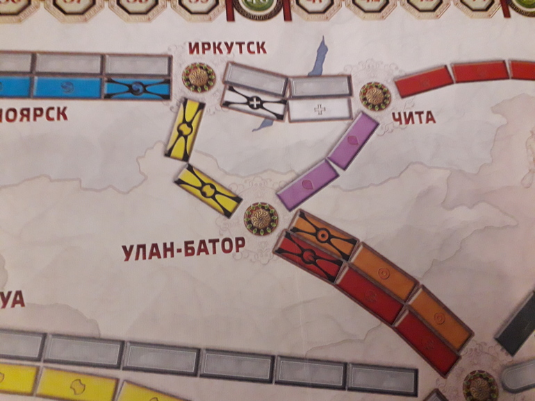 В Азии, как и в Европе, есть паромы. Новшество этой игры-горные перегоны. На карте они изображены в виде вагонов с крестом: