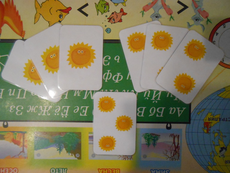 Что особенно меня порадовало, так это отношение дочки к карточкам-солнышкам. Ведь они лишают ребенка удовольствия! Когда дочка поняла это, то личико от выпавшего солнышка становилось грустным. А еще она стала подглядывать, слегка приоткрывая карту за уголок - не солнышко ли там. И по улыбке или грусти на лице становилось понятно, что там за карта. Как-то раз дочке не везло, и солнышки выпадали подряд. Она очень расстроилась, думала и заплачет. Тогда на следующем солнышке я сама ей предложила спрятать солнышко под низ колоды и сделать вид, что оно не выпадало. Дочка очень обрадовалась! Прямо просияла. Потом ей еще раз выпало солнышко и она с такой надеждой посмотрела на меня… Эту карту мы тоже спрятали под низ колоды. Это было в первый же день знакомства с игрой. А на следующий день дочка взяла игру и стала перебирать карточки. Смотрю, а она отобрала все солнышки и спрятала у себя в рюкзачке. Спрашиваю: «Ты зачем солнышки в рюкзак положила?». Ответ: «Они спят». Вот такой вот находчивый ребенок! Зачем расстраивать себя, когда неприятные карточки можно просто убрать из колоды. Сейчас они хранятся у нас в коробке с игрой, но под простынкой, и мы с дочкой иногда играем по правилам)))