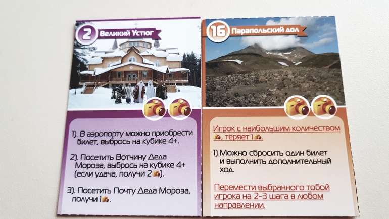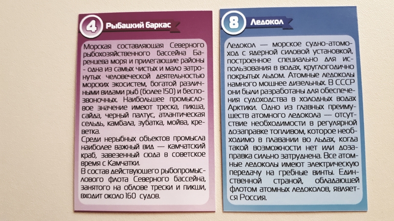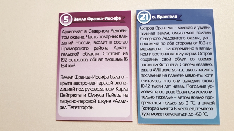 В довершение ко всему встречаются опечатки. Одна из них на игровом поле (два объекта на фиолетовом пути с цифрой 6), при этом на карточке Земля Франца Иосифа с правильной нумерацией (с цифрой 5). Есть опечатки и на карточках. Например, неправильная нумерация действий. Вроде мелочь, а неприятно, и может сбивать с толку игроков младшего возраста.