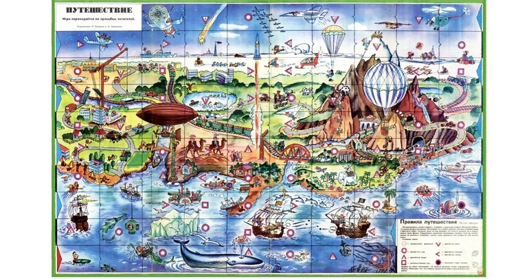 Муж рассказывал, что в детстве играл с братом в самодельные игры из школьных контурных карт. Выбирали пункт А и пункт Б и соревновались, кто первым доберётся. Бросали кубик и отмеряли шаги линейкой (точка на кубике = 1 см). А если выпадала шестерка, можно были либо пройти 6 см, либо нарисовать какое-нибудь препятствие на пути соперника.