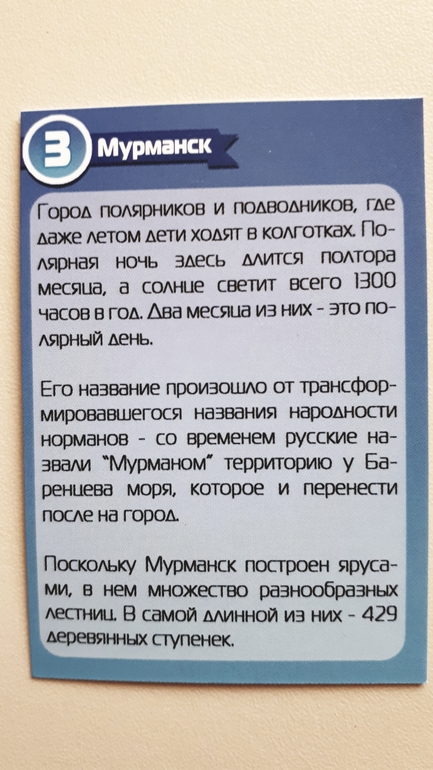 Второй город кто-нибудь навскидку назовёт? Так что что 3 место, что 4. А вот про Мурманск написать побольше надо бы. А они про колготки летом в первом же предложении. Как будто это самое важное, что надо знать о Мурманске, его отличительная черта. Да во всех городах Заполярья холодно. Кстати, неплохо было бы, если б они заодно объяснили, что такое полярный день и полярная ночь.