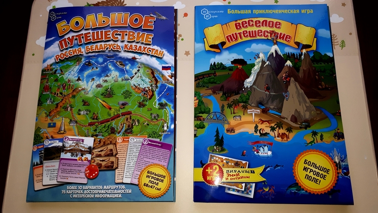 РазноеЭто две игры-ходилки. Веселое путешествие - обычная "кинь-двинь", а в Большом путешествии предлагается 2 варианта игры (простая ходилка и ходилка с использованием карточек).