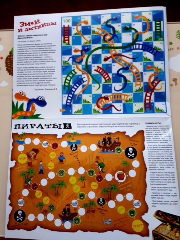 С дочкой пробовали играть в обе. Змеи и лестницы обычная, играбельная, а ходилка Пираты нам не понравилась.
