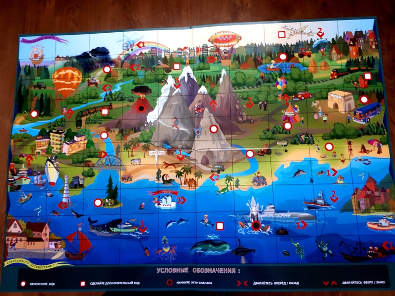 Мы с детьми до сих пор играем в простые ходилки. Вот нравятся нам и всё. У нас есть похожая, но без карточек от Геодома. Нравится, что в зависимости от первоначального броска кубика, зависит твой маршрут (всего их два).