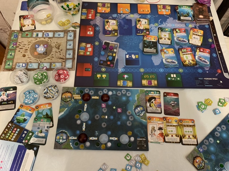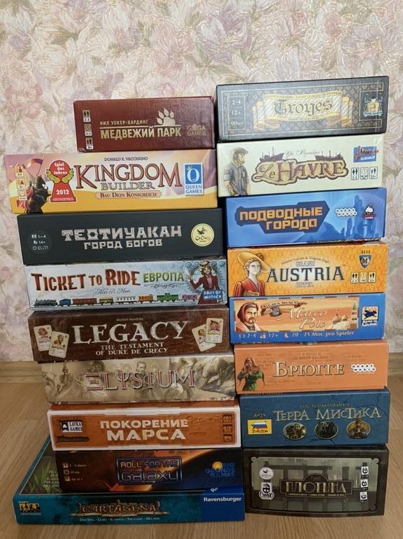 Коробок гораздо меньше, но зато в некоторые было сыграно не по одной партии. В неё должны были ещё войти 7 чудес и 80 дней вокруг света.