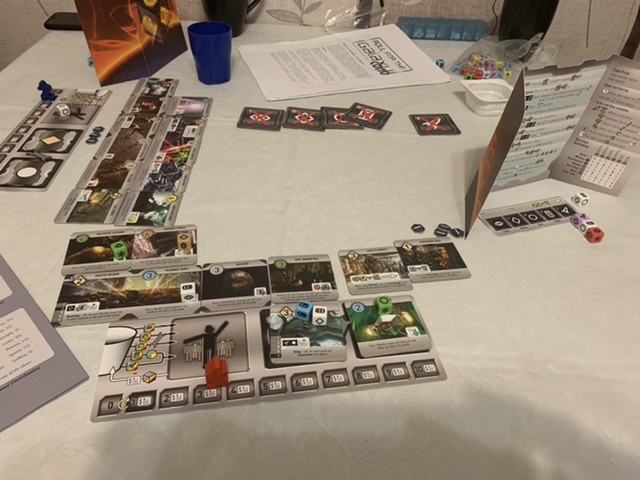 Это Колодострой с элементами гонки и приключений. Довольно азартная и атмосферная, я называла ее когда-то смесью Звёздных империй и Предельного погружения, так оно и есть. Играть нам в неё очень нравится, выигрывают все по очереди, партии захватывающие, в последней партии я потеряла сознание в подземелье когда проснулся