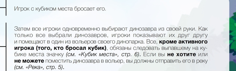 Получается, что игрок, который бросает кубик, может ставить динозавра куда угодно. Мне это правило не понравилось, у нас все следуют кубику. Хотя возможно так добавится стратегичности. Но вдвоём слишком часто будешь ставить куда надо, а не куда кубик указывает. Слишком просто.