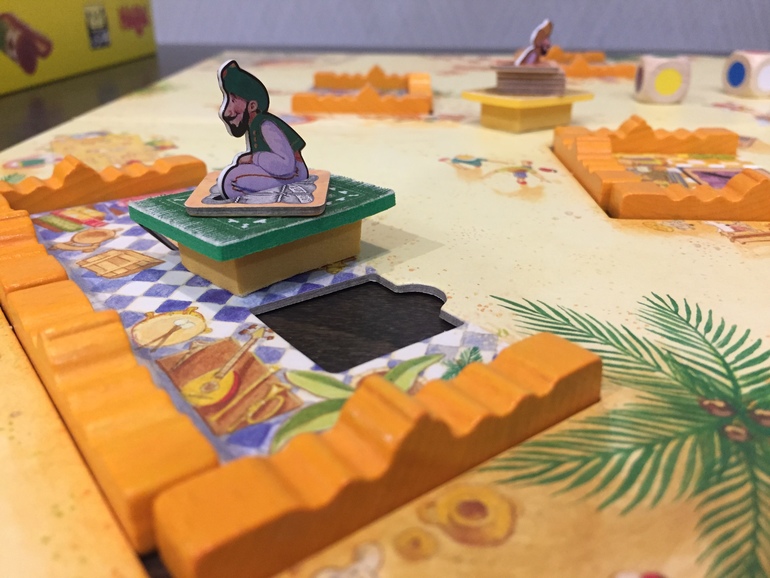 Игровое поле представляет рыночную площадь Акабы, на ней размещены 8 палаток (2 большие и 6 маленьких), фонтан и 2 стартовых квадрата.