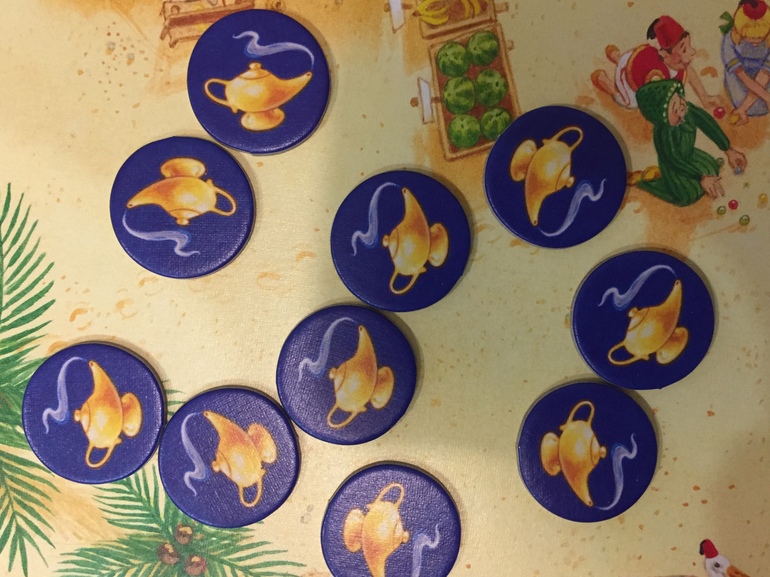Если игроков меньше 4, то остальные ковры и карты возвращаются в коробку. 10 волшебных ламп при таком варианте игры не нужны и тоже кладутся в коробку.