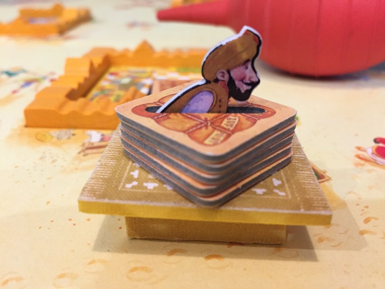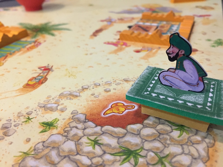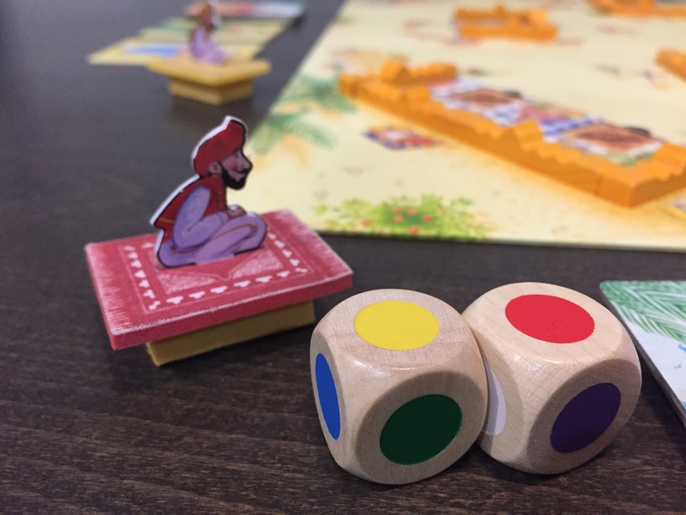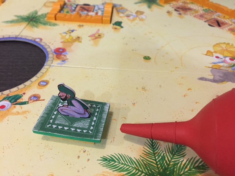 Если Саати выбросит два желтых цвета, он выбирает один из двух стартовых квадратов с изображением лампы и кладет на него только что остановленный ковер. Владелец ковра получает карту с лампой, если карт больше не осталось, то он не может получить ее.
