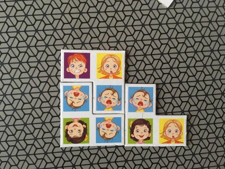 Мы с сыном недавно пробовали игру, но ему просто нравится выкладывать уголки, чтобы мордашки совпадали), главной цели - быстрее избавится от деталей он пока не понял). Мне очень нравится оформление игры, такое оно позитивное!! С дочкой играли пару раз, но она не любит такие медитативные игры. Жду когда сын чуть подрастёт
