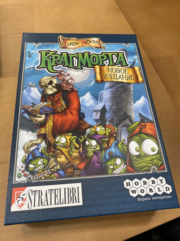 Крагморта. Суть игры ходить по карте и толкать соперников, чтоб они получили штрафы. Встаешь на клетку портала берешь жетон, может быть бонус, может быть штраф, может просто перемещение. Ходы за счет карт на руках. Так же есть хозяин библиотеки, его то же можно передвигать за счет карт. Встреча с ним - штрафная карта. 3 карты - проиграл. Сыну понравилось. Просил купить. Посмотрим. Мне под конец было дурно. Просто винегрет в голове)))
