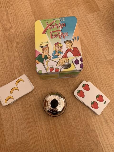 Отличная игра для самых маленьких для тонировки счета в пределах 5. Состоит из колоды карт с разными фруктами и звоночка. Карты делятся между всеми участниками поровну, и игроки по очереди открывают верхние карты своих стопочек.