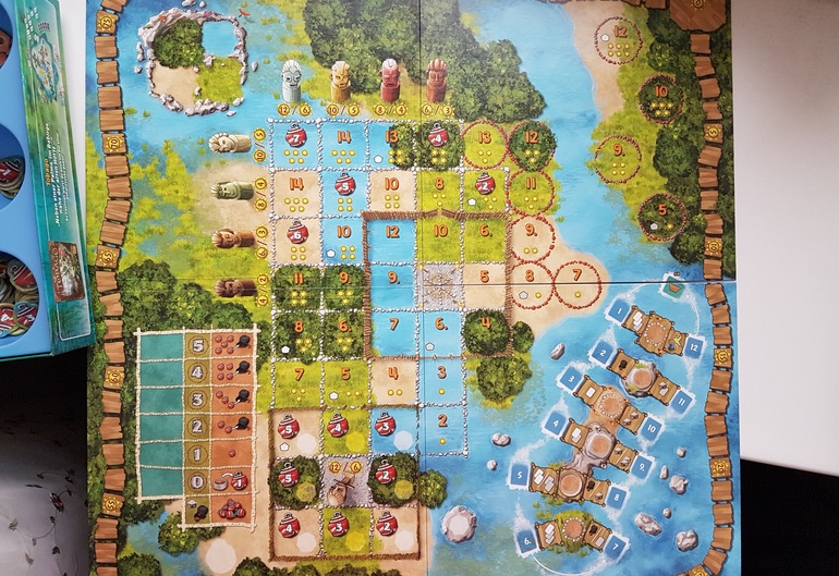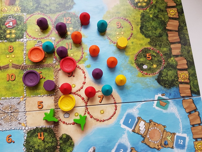 Как только один из игроков выставил последний домик, раунд доигрывается, и начинается подсчёт очков. Очки начисляются в каждой области по своему. Учитывается и количество домиков, и близость к началу тропы. Так что взаимодействие вполне себе присутствует, каждый стремиться занять место подоходнее, а домик на клетке может быть только один.
