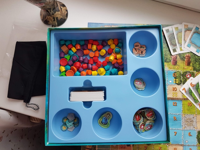 Манкала и любимый Каталой аукцион, куда без него. Поле строится случайным образом, миплы из мешка достаются случайные. В общем партии непохожи друг на друга. И, наконец-то, лучше всего вдвоём.