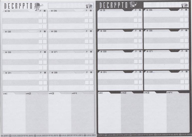 Итак, белые записывают код в первой группе квадратиков напротив слов, после озвучивания вскрываем код и если совпал - молодцы (ничего не получают), обе команды внизу листочка "раскидывают" ассоциации по номерам.
