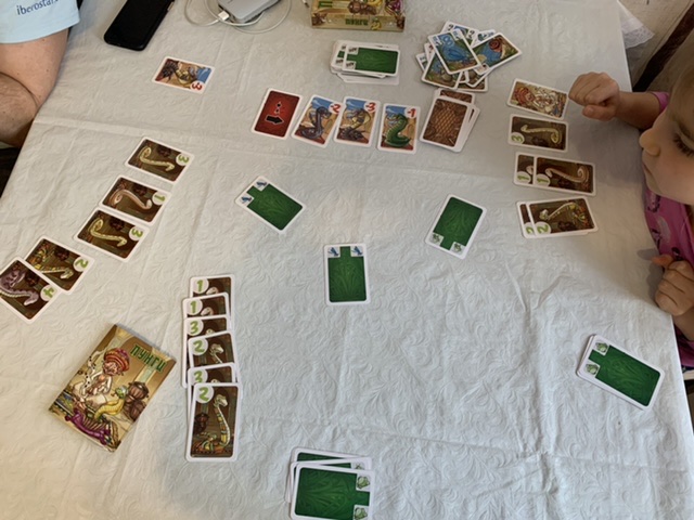 Дочка только начинает понимать какие именно надо играть карты, чтобы попытаться получить нужную тебе змею, раньше, мне кажется, она играла наугад).