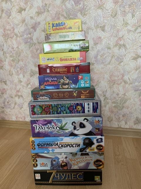 Остальные игры были сыграны с папой. В самую верхнюю в стопке мы играли вчетвером с сыном.
