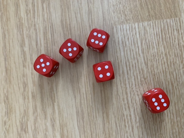 Был смешной момент. Бросаю я кубики, и среди единиц пустая грань. Я аж обалдела, нули тоже бывают.