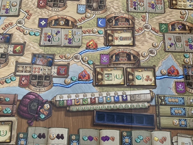 Некоторые города позволяют взять новые контракты, а другие дают возможность выполнить новые интересные действия нашими кубиками- рабочими.