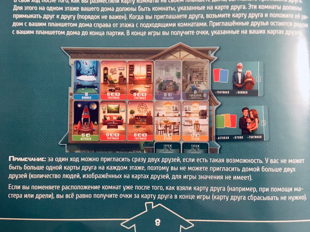 Сын , кстати, впечатлился домиком очень. Ему понравилось. И мало того, он играл намного лучше дочки. Прежде чем сбросить карты с игрового планшета, он смотрел в наши с дочкой дома и проверял, что нам может понадобиться, и именно эти карты сбрасывал. Плюс выполнил все цели, заселил гостей. Но! Так же как и дочка менял карты на те, которые больше нравятся рисунками, фантазировал про своих будущих детей. Интересно было за ним наблюдать. Так что Домик теперь на пике популярности у всех нас. А дочка мечтает добавить все карты в игру, а каждому из нас раздать по два дома. Решили попробовать так на каникулах поиграть. И хочу добавить . Если у Вас есть игра домик, покупать дополнение вовсе не обязательно. Можно просто распечатать 12 карт гостей и 12 карт планов дома. А кто печатать не имеет возможности, может просто написать цели от руки на листочках, этого вполне достаточно. Игра знатно преобразиться.