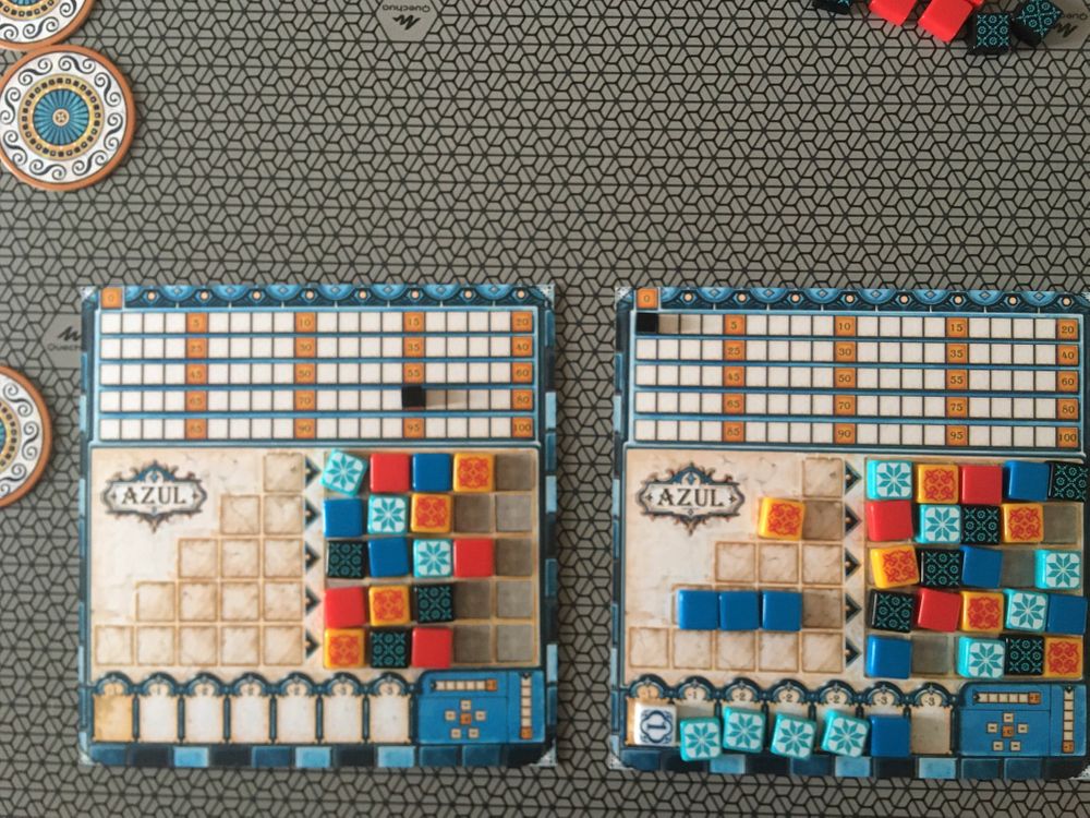 С сыном мы сейчас играем почти каждый день. 8 марта мы отметили с самыми прекрасными играми, выбранными по моему желанию, в числе которых был азул. Сын игрой проникся. С того дня , по возможности , играли исключительно по инициативе моего мальчика.