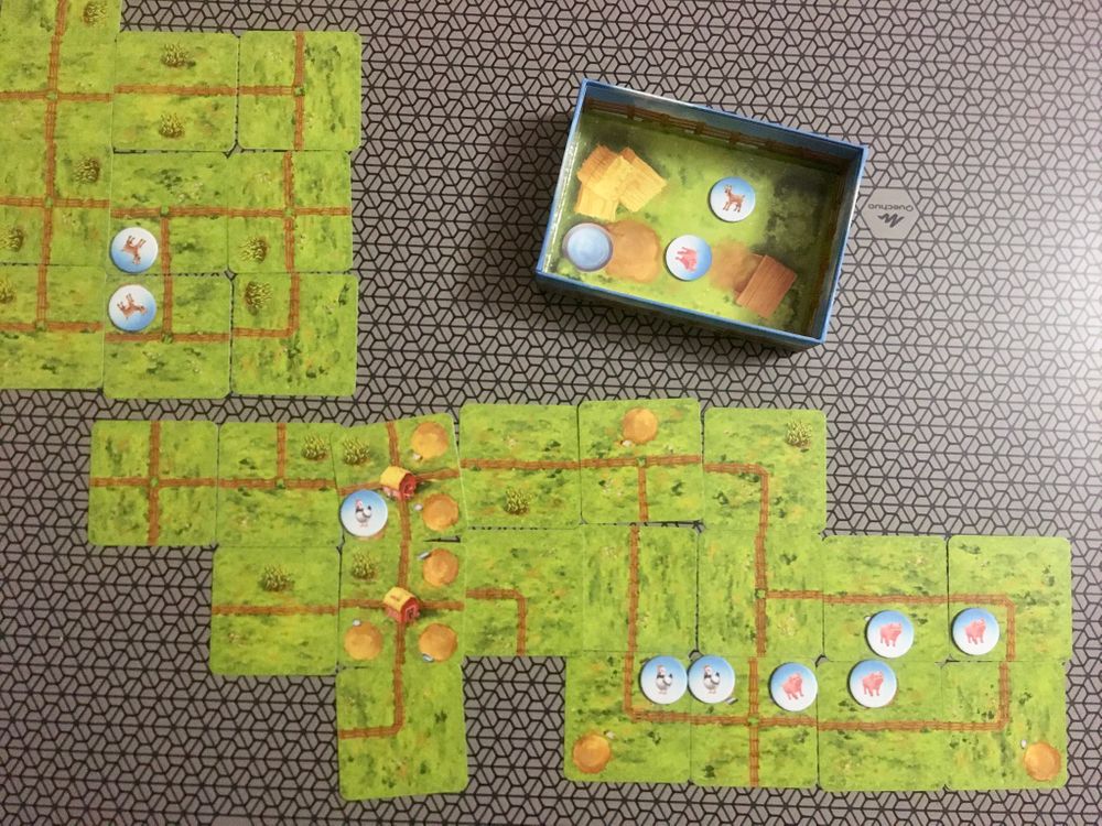 Захотела я их после отзыва Ольги. Нашла старую версию в продаже и не могу нарадоваться. Я уже где только не написала в сообществе о своих впечатлениях, о своём восторге, радости от обладания этой коробкой. Милая, добрая, совершенно не исключительно детская, потрясающая игра! Я не могу оторваться от этих деток, хочется играть ещё и ещё. И не такая уж она простая. Дети у меня ни разу не выиграли до сих пор. Я продлеваю им дороги, разбрасываю по всему полю тайлы с их человечками, чтобы им труднее было закрыть сразу несколько дорог. Дети удивляются, что игра совсем для малышей, ведь выиграть не могут. Мы разглядываем всех овечек, деток, кошек, собак. До того всё в игре милое и прелестное. Жалею только обо одном, что в пять лет сына я , тогда ещё не сильно разбирающаяся в игровой индустрии, прочитала в сообществе, что детскую версию в 5 с половиной лет покупать уже поздно, слишком просто и примитивно, и лучше сразу купить взрослую версию. Я прислушалась и к семи годам сына купила Королевский подарок. Сейчас я бы обязательно купила эту детскую игру. На мой взгляд, особо ничего общего с Каркассоном у неё нет, по ощущениям совершенно другая игра. И уж вырасти из неё в 5 с половиной лет точно невозможно. А мы теперь будем , хоть и с опозданием, наслаждаться чудесными партиями.