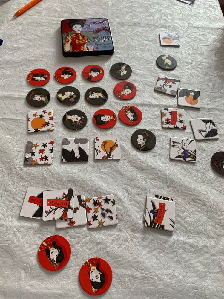 Окийю дочка почему-то не любит, но в этот раз играла довольно неплохо, чуть в угол меня не загнала, я вовремя заметила. Выиграла в результате я, но только потому, что не оставила дочке возможности следующего хода.