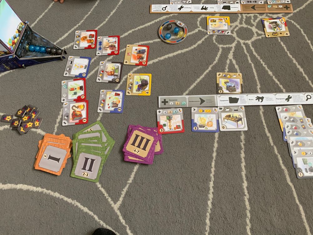 Дочка после первой же партии поняла суть и составляла мне достойную конкуренцию. Успевала и свои сеты собирать и мне вредить. Сыграли 3 партии по 3 раунда, благо играется она очень быстро. Думаю, на двоих она гораздо стратегичнее, на большое количество начнётся полный бедлам).