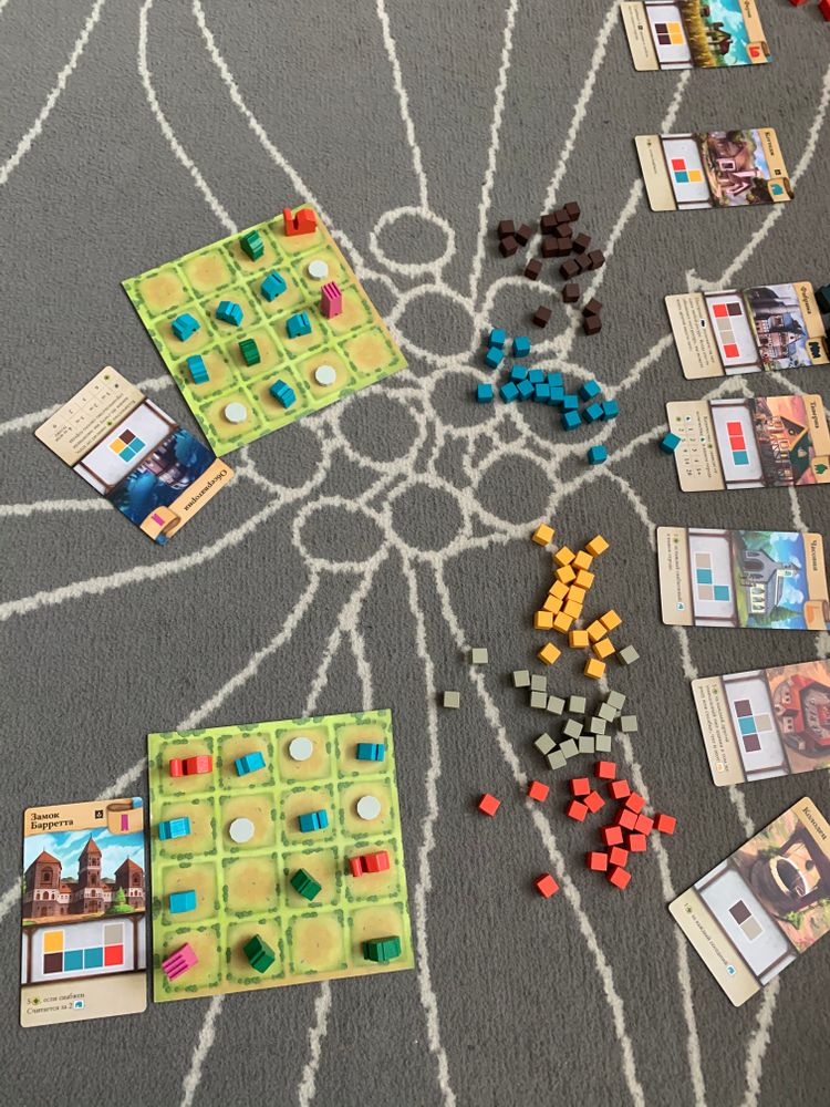 Игра не сложная, но ребёнку пока не очень просто просчитать все оптимально, даже у меня поначалу не складывалась ясная картинка действий). Это мы ещё не подстраивали гадости друг другу по первости 😂. Отличный тренажёр пространственного мышления и планирования! Но к реиграбильности вопросы, несмотря на большое количество карт. В любом случае для своей цены очень неплохое наполнение:карты красивые, деревяшек много, органайзер в комплекте. Люблю Гагу за такое отношение к своим покупателям.