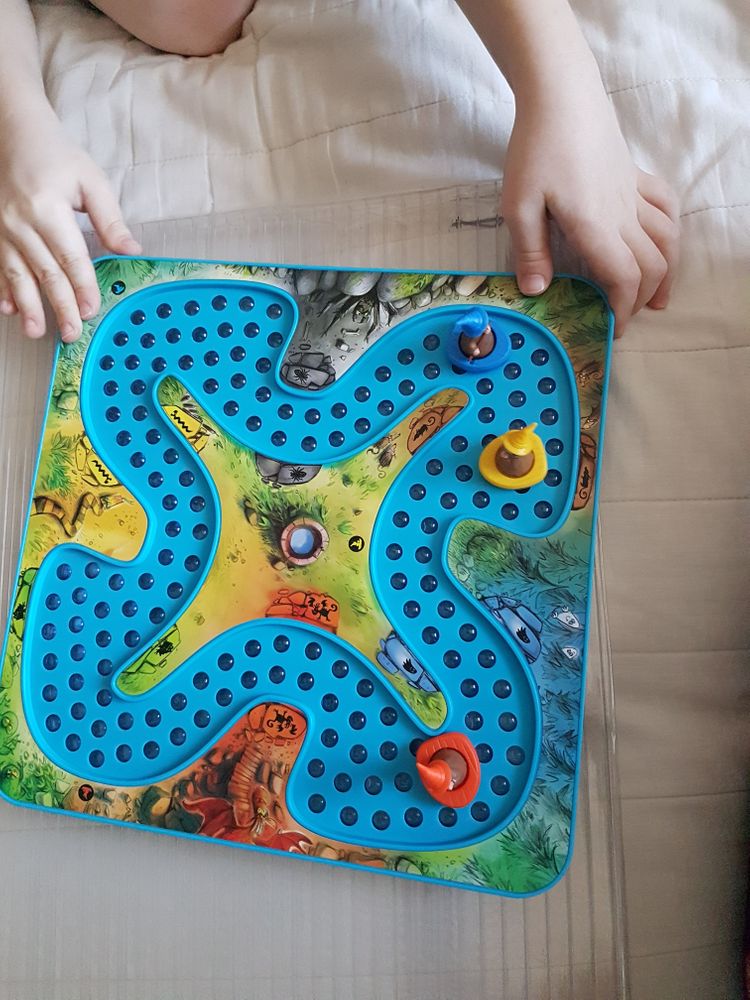 Отличная игра на ловкость и координацию, которая может вполне выступать у меня в номинации "игра, которая превзошла ожидания". Я побаивалась её, думала, что нужна идеальная поверхность. Отлично играется в кровати на жёсткой подложке.