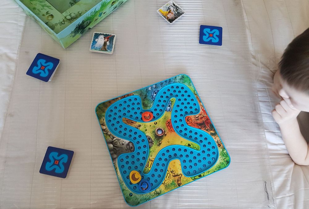 Двигая поле, управляешь рекой и ведёшь нужного тебе чародея к нужному чудовищу. И вдруг крик: "Стоп!" Оказывается, пока ты пыхтел над своим заданием, выполнил чужое, а твой ход закончен. Вот и пытаешься нужного двигать, а остальных нет. Хотя и это не гарантирует успех, у оппонента задание может быть на того же чародея. Побеждает тот, кто первый наберёт 6 карточек.