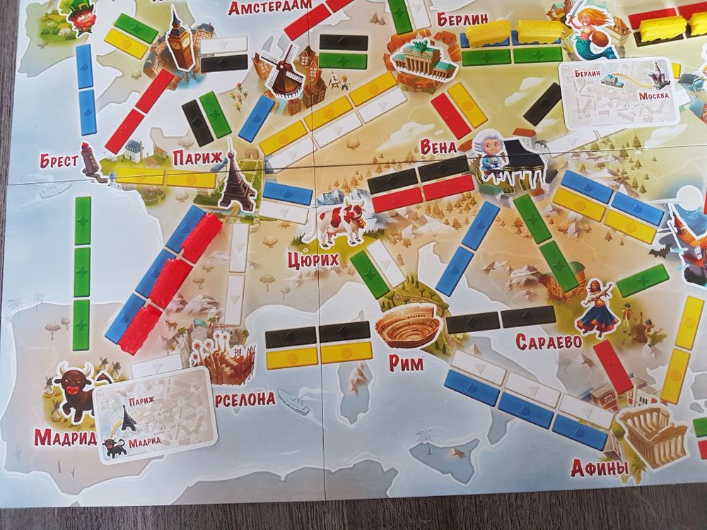 Пока сложновато, играли в открытую с подсказками, какую карту лучше брать. Посмотрим, как дальше пойдёт. На мой взгляд, неплохо, можно добавить очки за перегоны из взрослого Билета.