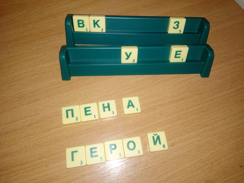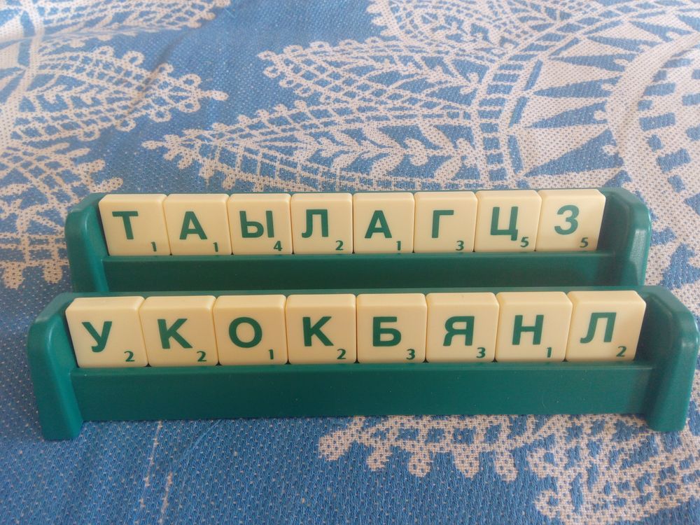 Я нашла правила, саму игру я даже не пыталась найти. Изучив всё подробно, я обрадовалась, ведь всё необходимое у меня есть. Нужны буквы и подставки. Скраббл прекрасно подошёл, его костяшки не мелкие, а в самый раз, хорошо располагать на столе, места занимают немного.