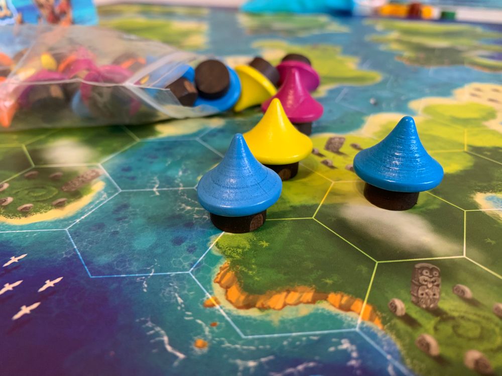 Вместо жетона туземцев мы по тем же правилам можем выложить и фишку деревни, зачем они нам нужны напишу чуть позже. Так продолжается до тех пор, пока не закончатся или ресурсы, или все игроки не выложат все свои фишки на карту.