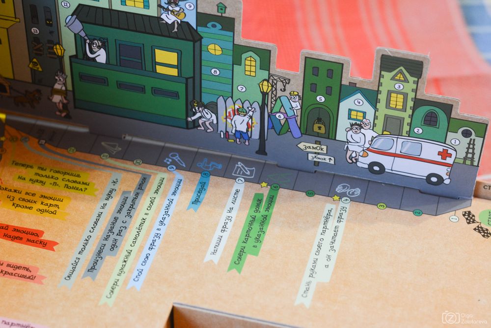 Во-первых, это Диксит, в который дочка заставляет играть с ней ещё лет с трех с половиной))) Да, многое нужно пояснять, да, ассоциации прямолинейные. Но Лиду не отвадить от игры, если взрослые с ней, и я вижу, как игрок растёт. Имаджинариум детство даже пришлось купить, но он оказался не таким и детским (шутка насчёт "пришлось", но суть такова: теперь у нас обе игры). И Эмоциональный интеллект, про который я так и не напишу отзыв, тоже игра Дикситоподобная, скажем так. И интересно оформленная, поэтому и она не осталась без повышенного внимания. Играем в паре с дочкой, я читаю и объясняю значения некоторых эмоций, если надо. Угадывает она сама, как правило.